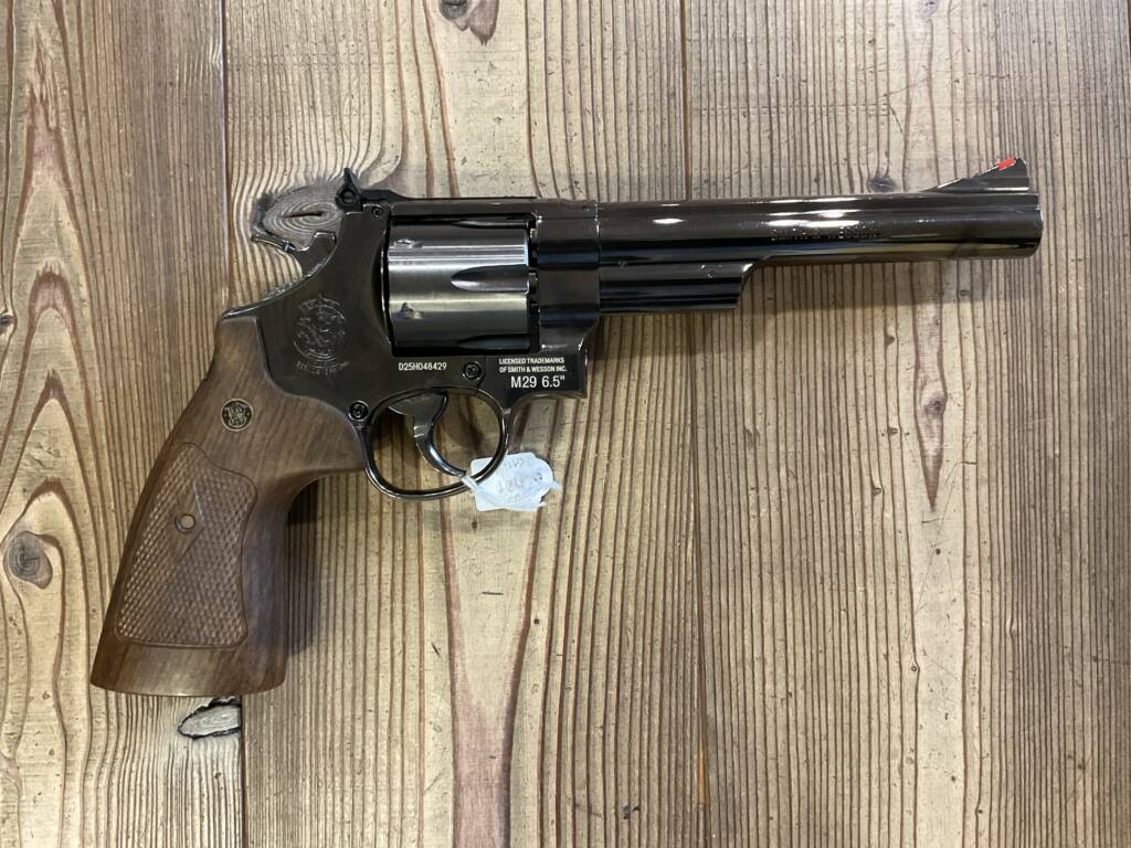 Il nonno di tutti i revolver S&W… modello M29 versione a CO2 da 4,5 mm di questa icona del 1955 è completamente in metallo di colore blu lucido e una canna da 6,5″. Fedele all’originale, ci vogliono sei bossoli di metallo color ottone, ciascuno caricato con un pellet. lo scatto fedele all’originale ha un grilletto a singola/doppia azione, i pallini escono dalla canna con un’energia massima alla volata di tre joule. Arma di libera vendita..venduta a amggiorenni.