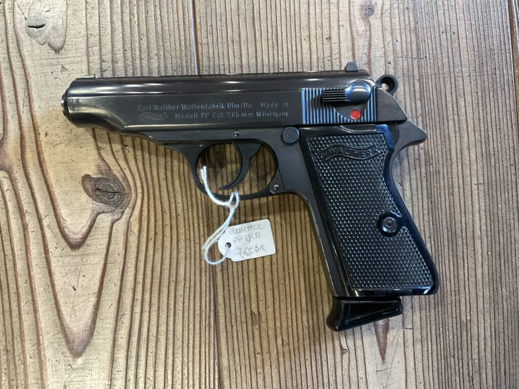 USATO – Pistola semiautomatica mod. PP ULM, le Walther prodotte a Ulm sono note per l’ottimo livello di finitura, spesso considerato pari o superiore a quelle pre-guerra, cal. 7.65 mm. fornita con 2 caricatori valigetta e istruzioni. Arma classificata comune .. ottime condizioni.